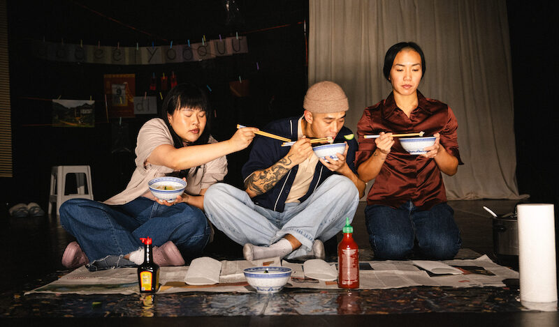 Wie spricht man über Gefühle, wenn der Raum dafür nie zu einem gewohnten Ort werden durfte? Das Stück »Hörst du mich?« widmet sich dem Scheitern der Kommunikation und der Sprache, aus der Perspektive von Viet-Deutschen der zweiten Generation. Drei Protagonist*innen versuchen sich dabei an Übersetzungen von Sprachlosigkeit. Erzählt wird vom Standpunkt des alltäglichen Zwiespalts zweier Kulturen, multipler Identitäten und doch: von generationeller Einsamkeit sowie der Möglichkeit des Ankommens, in Kulturen, Sprachen und bei sich selbst.
