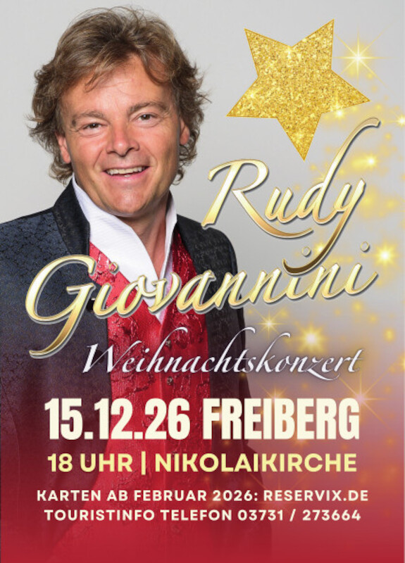Auf seiner Weihnachtstournee 2026 kommt Rudy Giovannini wieder in die Nikolaikirche Freiberg.Freuen Sie sich auf ein Weihnachtskonzert voller Vorfreude und Besinnlichkeit!Es ist ein Konzert der...
